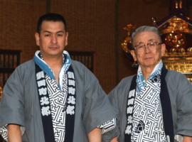 右*神田まつやの大旦那(右)も若旦那(左)も祭りの重要な役割を果たしています。